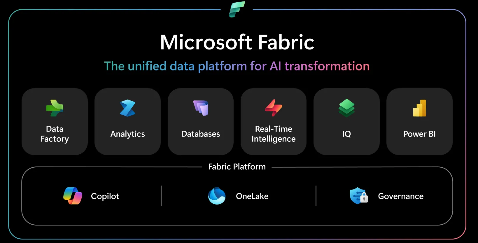 - Unified storage plane: Store data once and access it through multiple engines (Spark, T-SQL, KQL) without creating a second physical copy for each workload.